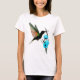 Pássaro verde pequeno que verifica para fora as melhores flores
