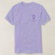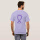 A pintura de uma fita de reconhecimento violeta, lavanda ou orquídea é exibida nesta roupa de reconhecimento de causa personalizada. A faixa de reconhecimento de lavandas suporta canceres de todos os tipos. Personalize as t-shirts na frente e no verso com a sua própria mensagem ou tema da fita de sensibilização para fazer uma mercadoria especial com roupa de fita de cancer. A arte da camisa do anjo de consciência da lavanda pode ser personalizada com mensagens personalizadas para fazer camisas de excelente para roupas de arrecadação de fundos, camisas de caminhada personalizadas da equipe, presentes de conscientização pessoal ou outros eventos ou ocasiões especiais de reconhecimento de causas.