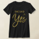 Camisas de festa de solteira com efeito de folha de ouro Ela disse sim