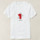 Um grande número vermelho 1 com olhos, braços e pernas em T-shirts de primeiro aniversario Número, canecas, cartões, adesivos, guardas e outros dispositivos de primeiro aniversário.
