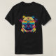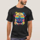 Esta imagem mostra um pug usando óculos de sol retrô estilosos, retratado em um estilo de arte vibrante e psicodélico. As cores são ousadas e brilhantes, com uma mistura de amarelos, azuis, vermelhos e roxos, criando um visual dinâmico e atraente. O estilo artístico inclui efeitos de respingo e tons graduais, dando-lhe um sentimento vivo e moderno.