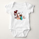 Esta peça branca divertida para bebês apresenta uma cena de desenho animado animada inspirada no clássico duo de desenhos animados — uma vaca marrom travessa montando alegremente uma galinha assustada vestida com um chapéu de cowboy e bandana. Com nuvens de poeira e rostos expressivos, é um divertido aceno à comédia de tema western, perfeito para pequenos aventureiros