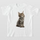 Uma encantadora ilustração digital de um gatinho Maine Coon fofinho com olhos âmbar expressivos, olhando para cima com um olhar curioso e gentil. O gatinho apresenta orelhas tufadas características e pelo tabby lindamente detalhado em tons de marrom e carvão. Ele está usando um suéter de lã cinza, acolchoado e feito à mão, com ponto de tricô texturizado e um pequeno detalhe de botão marrom no pescoço. A obra de arte é apresentada em um estilo limpo e de alta detalhe contra um fundo cinza claro sólido, destacando as texturas do pelo macio e a atmosfera quente e caprichosa do retrato.
