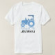 Esta é uma camiseta branca com um trator azul nela e o texto ᏗᎦᏓᎷᎪᏙᏗ abaixo que é em Cherokee para trator. Você pode personalizar esta camiseta para alterar a cor da fonte, alterar o tamanho e o tipo da fonte e muito mais para transformá-la em sua própria camiseta única.