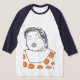 Camiseta Básica, Mangas Raglan 3/4, Branco/Preto, Adulto M