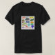 多くの種類の熱帯魚の影絵に様々な彩色をしたTシャツです。熱帯魚のことをよく知っている友人のアクアリストなら、このTシャツをおもしろがってくれることでしょう。デザイン:小林道信(Design by Michinobu Kobayashi)