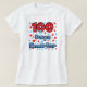 Texto vermelho e azul com 100 estrelas design em 100 dias T-shirts, canecas, botões, bolsas, cartões, autocolantes, ímanes, chaveiros e outros 100 dias de roupa e presentes escolares.