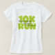 Texto verde primavera, com a seguinte redação: 10K RUN e texto preto, com a seguinte redação: Determinação da Resistência em T-shirts, capuzes, botões, bolsas, canecas, adesivos e outros produtos para qualquer pessoa que esteja a treinar ou já tenha gerido um 10K!