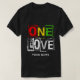 Um Amor! Texto vermelho alegre e colorido, verde e dourado, "UM AMOR" numa aparência de grunge/grafite. Esta imagem apresenta uma citação do Rei de Reggae, e simboliza a animada música, ritmo e vibração que identifica o gênero musical Roots/Reggae, a cultura Reggae, a Jamaica e a Ilha Caribe.