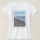 Today's trend for the 2016 nostalgia of a simpler, more peaceful time is portrayed beautifully on this beach women's t-shirt. The design features a gorgeous beach scene with sand, sandpipers and the sea. The photograph is edged in white and the nostalgic color serenity. In the sand the words, "2026 is the new 2016" are written in white. Copyright Kathy Henis