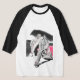 Camiseta Básica, Mangas Raglan 3/4, Branco/Preto, Adulto M