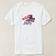 Grande bandeira dos EUA, com a forma de 4 e a palavra julho. Disponível em vários estilos e cores de camisas. Por D. Bennett, da Balance America.