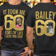 60º aniversário, preto e ouro, levou 60 anos de vida para eu olhar essas duas boas fotos e o nome na camiseta traseira. Diversão 60ª foto personalizada, design de aniversário de preto e ouro. Personalize esta camisa honorária de aniversário com duas fotografias do aniversariante ou menina no meio do número 0 na frente e atrás. Excelente ideia de adicionar diversão a um presente de aniversário de sessenta anos. Outros itens e cores correspondentes estão disponíveis. Design exclusivo por Sarah Trett para www.mylittleeden.com
