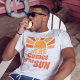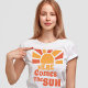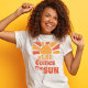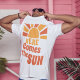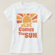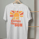 Camiseta 70s retrô Vintage pôr do sol Aqui vem o sol verão