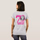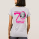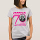 Happy 70th Birthday pink text, name and two photos t-shirt. Fun double sided 70th personalized photo t-shirt in bold pink text design. Personalize this birthday shirt with a photograph of the birthday girl in the middle of the number 0 on both the front and the back. Great idea for adding some fun to a milestone sixtieth birthday party celebration. Other matching items and colors options are available. Exclusive design by Sarah Trett for www.mylittleeden.com