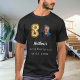 Para uma t-shirt preta e de cor escura. Texto preto. Personalize e adicione uma foto, nome, idade, data. Ouro falso com 8 números.