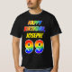 A frente desta excitante, ousada e colorida camisa de aniversário design apresenta um grande número "99" e a mensagem "FELIZ ANIVERSÁRIO", ambas com um gradiente de padrão inspirado no espectro do arco-íris, juntamente com um nome ousado e amarelo personalizado. Camisas animadas e ousadas com temas de aniversário como esta podem ser vestidas pelos participantes de uma festa que está sendo realizada para celebrar o 99º aniversário de alguém. [~Z0000473]