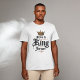 Uma t-shirt com uma ousada mensagem "Jesus é o rei para sempre" em tipografia gótica com uma design de coroa dourada pormenorizada, perfeita para inspiração e presentes de fé cristã