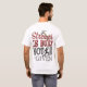 A camiseta satisfez completamente minhas expectativas. Tecido de ótima qualidade, bom caimento, estampa nítida, belas cores. Sem falar na satisfação de poder vestir uma camiseta que realmente tem a cara da gente. Muito bom. Estampa, cores e tudo o mais.