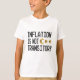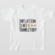 Design de bitmoney fantástico, com um monstro bitmoney comendo dólares e euros e a citação "A inflação não é transitória".