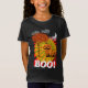 Fácil camisa de Halloween ou Festa de Colheita Figurino para o bebê. Excelente para a festa da igreja! Família de Abóbora Bonita de pé por uma árvore com Folhas de Outono Laranja em uma camiseta. Lua branca e nuvens com uma família de Cabeça de Abóbora de Halloween, sorridente, com um BOO Amigo! Com Olhos Engraçados em Cima de Cada Letra Grande! Somadas as faixas gráficas vermelhas e amarelas em segundo plano. Parece um Design de Sinalizador solar japonês