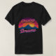 Este design capta uma vibrante e retrorinspirada cena do pôr do sol. Um sol estilizado, com um gradiente marcante, de roxo profundo a laranja nojento, fica atrás de uma cordilheira detalhada. As montanhas são fundidas em azuis profundos e pretos, com uma linha de pinheiros escuros em sua base. O texto "Busca" e "Sonhos" enquadra a imagem em uma fonte ousada e retrógrada com um esquema de cor rosa e azul brilhante, evocando um senso de aventura e otimismo. É uma mistura perfeita de beleza natural e uma estética retrô, ideal para aqueles que amam viagem, natureza, e estilos de arte antigos.
