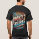 A design da camiseta "Promessa da Liberdade" apresenta uma poderosa e eterno representação da Estátua da Liberdade, de pé em alto contra um pano de fundo da bandeira americana. A tocha dela está em chamas, simbolizando esperança e liberdade, enquanto raios sutis de luz emanam de trás, reforçando a natureza duradoura da liberdade. Abaixo da imagem, a frase "Promessas da Liberdade" é escrita com ousadia em uma letra elegante, representando o compromisso inabalável com a liberdade e a democracia. O design equilibra o patriotismo com um talento moderno, fazer-o de uma notável declaração de resiliência e unidade.