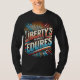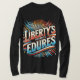 A design da camiseta "Promessa da Liberdade" apresenta uma poderosa e eterno representação da Estátua da Liberdade, de pé em alto contra um pano de fundo da bandeira americana. A tocha dela está em chamas, simbolizando esperança e liberdade, enquanto raios sutis de luz emanam de trás, reforçando a natureza duradoura da liberdade. Abaixo da imagem, a frase "Promessas da Liberdade" é escrita com ousadia em uma letra elegante, representando o compromisso inabalável com a liberdade e a democracia. O design equilibra o patriotismo com um talento moderno, fazer-o de uma notável declaração de resiliência e unidade.