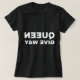 O texto do espelho da imagem Rainha dá caminho na frente e um texto Rainha não se adapta na parte de trás da engraçada fêmea, peça de camiseta feminina de roupa. Sinais de aviso de transporte de piada e humor. Por diversão e risada. Personalizável. Você pode alterar ou excluir o texto na parte traseira e pode alterar a imagem na frente. Para produtos escuros e negros. Divirta-se!