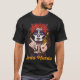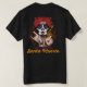 Uma ilustração impressionante dos Papais noeis Muerte, retratada com uma face tradicional do crânio do açúcar, coroada de rosas vermelhas, e segurando um revólver do ouro. Seu cabelo comprido enrola seu rosto enquanto suas mãos tatuadas exibem gestos simbólicos, misturando beleza, misticismo e poder