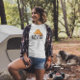 Citação. A vida é melhor em torno de uma fogueira. Bela arte cartoon estilo Kawaii com uma tenda e fogo.