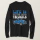Bem, você já tem a personalidade, então acrescente que a vida é melhor com os caminhões dizendo e você faz uma combinação perfeita. Ele apresenta uma mensagem divertida, um design artístico, e se você gosta de conhecer novas pessoas ou alguém que se coloca em situações onde eles podem fazer novos amigos, ainda melhor. Faz um presente de excelente para o caminhoneiro manual ou o caminhoneiro a diesel na sua vida que ama camisetas engraçadas de caminhões ou designs mecânicos de caminhões a diesel.