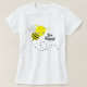 Esta camiseta tem uma linda abelha negra e amarela voando com um sorriso e um ditado motivacional Bee Happy!