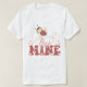 Esta design gráfica lúdica e romântica mostra uma abelha fofa com um coração vermelho e a frase "Abelha Mina" escrita em uma fonte lúdica e romântica. É uma maneira perfeita de expressar seu amor por alguém que ama abelhas ou espalhar alguma doçura.