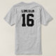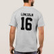 O presidente de Abraham Lincoln ostenta o T com parte traseira do nome e do número sobre