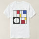 Iconic abstract geometric design inspired by Piet Mondrian – bold black grid lines dividing the canvas into perfect rectangles filled with primary red, blue, yellow, white and black, including signature half-circle element. Timeless masterpiece of De Stijl movement, neoplasticism and modern art in clean, balanced composition.