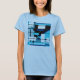 Este desenho abstrato consiste em várias formas geométricas, particularmente caixas, em aqua, marinho, azul claro e preto. Eles se combinam para um olhar elegante e artístico sobre uma t-shirt azul clara, com outros estilos e cores disponíveis para escolher. Inspirado no estilo Moderno do século Médio, o design projeta uma qualidade artística versátil e moderna para seu visto casual e diário (seja em casa, socializando com amigos, praticando esportes ou correndo sobre a cidade). A design de camisa como "arte 'vestível'" também expressa um senso de seu estilo individualizado, contribuindo para um sentimento de estar "unido" e criativo em suas escolhas pessoais.
