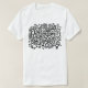 Uma camiseta com um design surreal abstrato, desenhado à mão, uma rede de formas que se conectam com formas semelhantes a fios que se parecem tanto naturais quanto com máquinas.