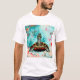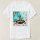 Um desenho desenhado pela mão de uma tartaruga com fundo abstrato. Cores utilizadas: vermelho, azul, lacrimejo, verde, amarelo, roxo.