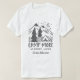 Crie uma camiseta personalizada exclusiva para a próxima viagem de acampamento ou excursão ao ar livre. Apresenta a citação de "acampamento mais, menos preocupação" em cinzas rústicas que aparecem debaixo de uma ilustração desenhada manualmente de uma tenda de acampamento em uma floresta de pinheiros com uma ascensão lua crescente sobre picos de montanha com capa de neve. A maneira perfeita de comemorar uma viagem especial, ou para qualquer um que adora acampar, você pode personalizar esta camisa de acampar com sua escolha de texto embaixo da design. Adicione seu destino de acampamento, o ano ou um nome de família.