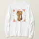 Camisa de Ação de Graças com uma imagem de Ação de Graças vintage de uma garota peregrina com cornucópia e borda de folhas de outono.