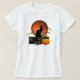 Uma silhueta do gato preto de Théophile Steinlen para o clube do Le Chat Noir num cenário moderno para a Ação de Graças com uma grande lua laranja, uma abóbora, Susanos de Olhos Negros e o gato com o chapéu de um peregrino.