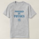 Acionado pela Física - t-shirt com letra azul de stencil e símbolo atômico.