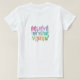 Esta camiseta apresenta a mensagem motivacional "Acredite em sua visão" em um gradiente ousado e multicolorido. Cada palavra é uma forma vibrante diferente, criando um design dinâmico e atraente.