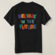 Esta inspiradora design de camiseta apresenta a frase "Acredite no futuro" em letras corajosas e multicoloridas contra um fundo abstrato dinâmico. O design transmite uma mensagem de esperança, otimismo e o poder da crença. Encoraja os usuários a abraçar uma perspectiva positiva, a conceber um futuro mais brilhante e a tomar medidas para criar um mundo melhor.