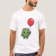 This heartwarming design features a delightfully round cactus character determined to enjoy a floating red balloon despite its prickly nature. The illustration showcases a clever safety solution, with small corks carefully placed on the cactus's sharpest upper spines to prevent any popping mishaps. With a beaming kawaii smile, blushing cheeks, and a tiny arm clutching the balloon string, this artwork perfectly captures a moment of innocent problem-solving and pure joy. The vibrant contrast between the green succulent and the glossy red balloon makes for a visually striking and humorous cartoon composition.
