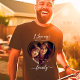 Eu amo minha família com uma foto personalizada. A design apresenta um quadro cardíaco com uma foto personalizada e um texto personalizado de script dizendo que eu amo minha família, filho, esposa ou filha.