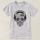 Se você, ou alguém que você conhece é um amante de música digital, ou um audiófilo, que ama o som de vinil retrô, turntables, fones de ouvido e som de alta fidelidade, esta camisa de crânio é o presente perfeito! O crânio é constituído por um aparelho de controlo de estúdio: quadros giratórios, teclado, fones de ouvido e tomadas, mesa misturada, equalizador, etc. Este design é excelente para todos os gêneros e idades.