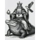 Agares appears as an aged sovereign, calm yet commanding, riding a grounded crocodile with quiet authority. A hawk rests on his fist, symbol of watchful power, as robe and beard flow in solemn harmony, blending wisdom, dominance, and myth into one striking vision.