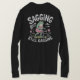 A funny illustration of an older, anthropomorphic frog wearing a pink dress and using a walker, accompanied by the bold humorous phrase “Sagging but still gagging.” The design blends playful cartoon style with cheeky humor.